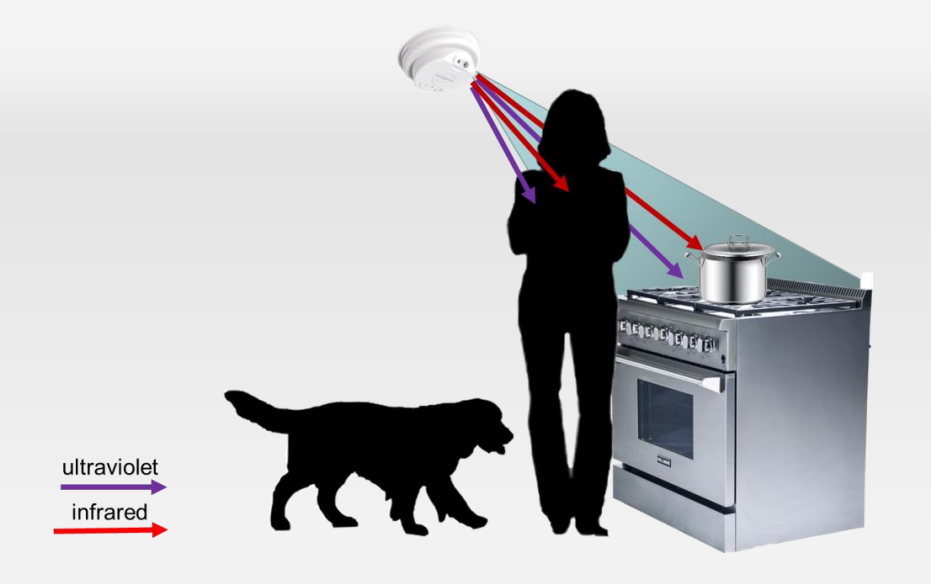 The heat sensor detects the heat radiating from the stove area. Elderguard determines when the cooking process has begun when the observed heat crosses a predetermined threshold. The motion sensor monitors the area and determines if the cooking activity is receiving adequate attention. The combined system can distinguish between adults and children/pets, reducing the chance of false alarms.